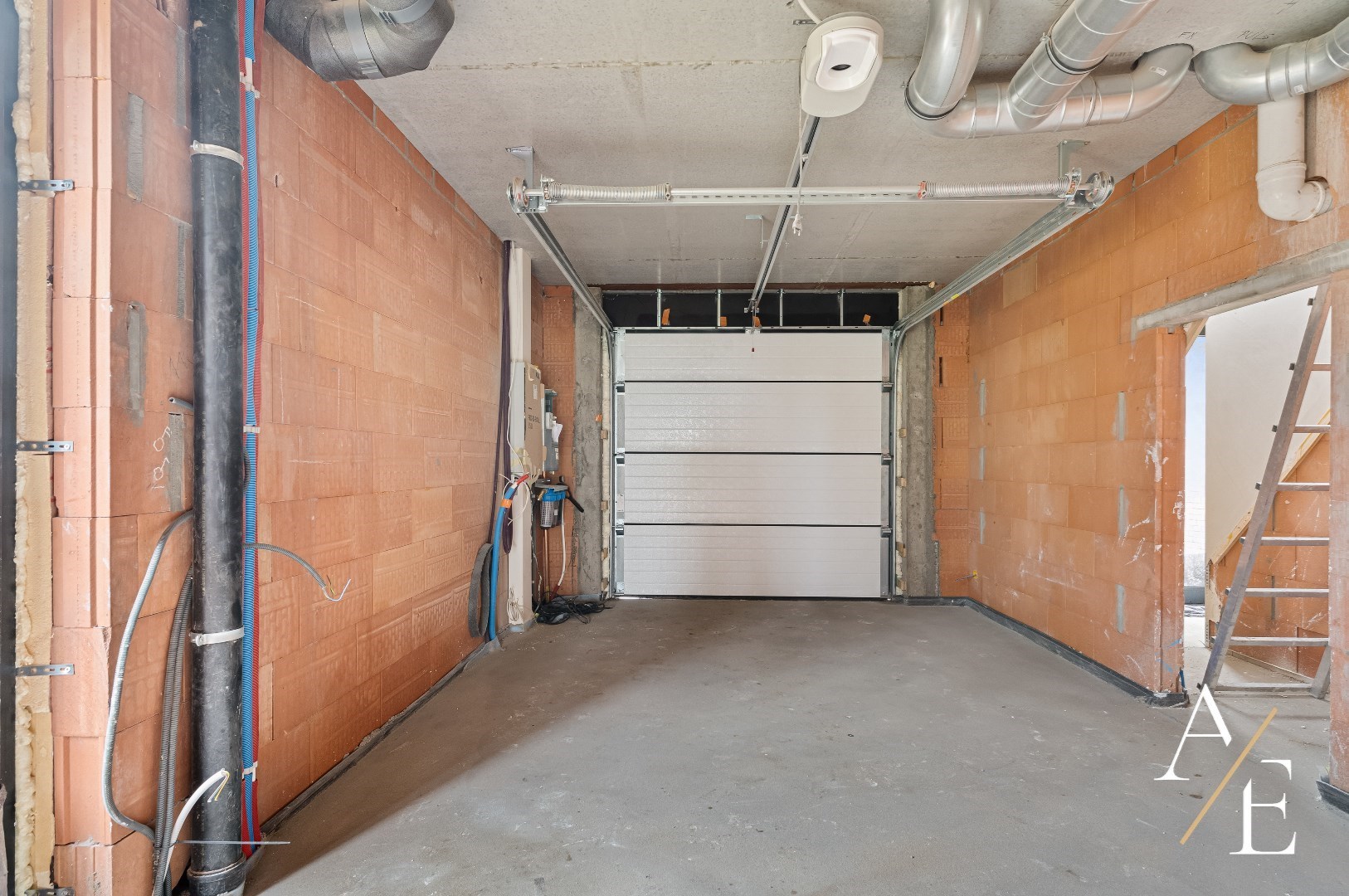 - Gelijkvloers: Inkomhal met gastentoilet, ruime woonkamer, keuken en inpandige garage.