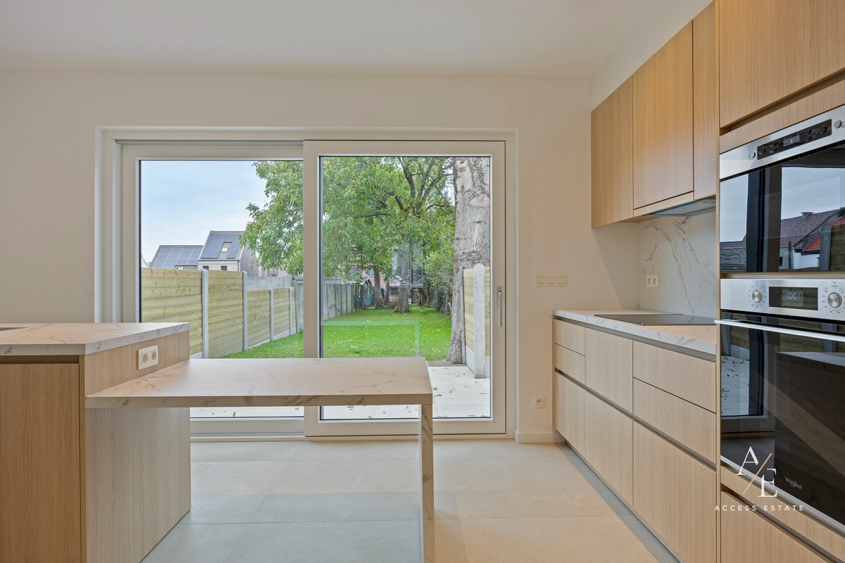In een rustige, verkeersluwe straat in Heldergem vinden we deze prachtige woning terug, die in 2025 een volledige en hoogwaardige renovatie onderging. Het gelijkvloers verwelkomt je met een inkomhal en apart toilet, waarna je binnenstapt in een gezellige, lichtrijke leefruimte met op maat gemaakte kasten en een aangename eet- en zithoek. De aansluitende moderne keuken is volledig uitgerust met kwalitatieve toestellen en biedt via het schuifraam toegang tot de onderhoudsvriendelijke tuin met aangelegd terras en een fraai zicht op groen. Daarnaast is er nog een praktische berging met wasplaats voorzien.