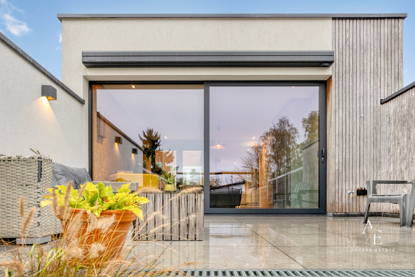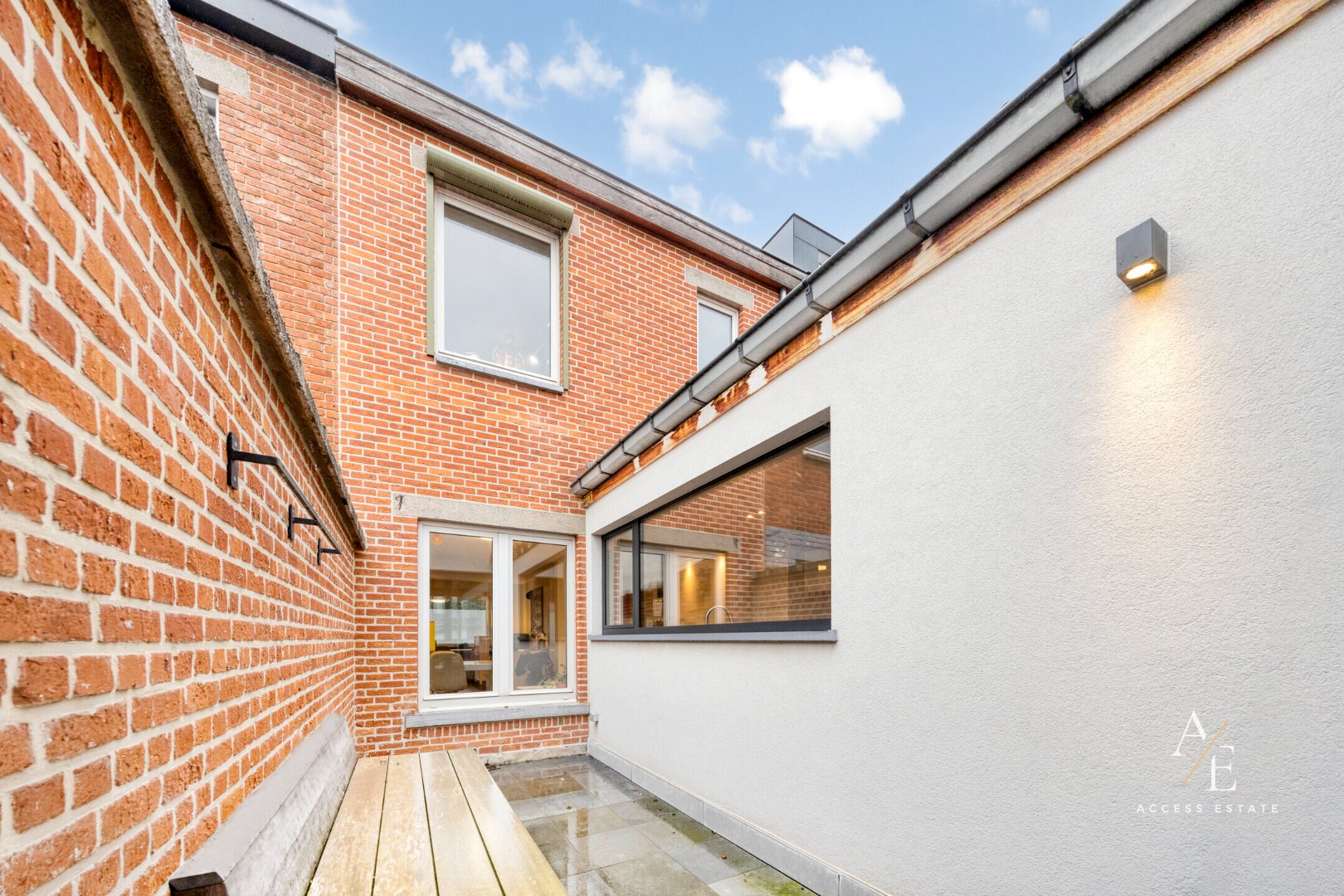 Bij het betreden van de woning komt u in een elegante trappenhal. De lichtrijke en bijzonder ruime leefruimte vormt samen met de eetplaats en een bureauruimte het hart van de woning. De grote raampartij tussenin geeft uit naar een leuke gezellige binnenplaats en zorgt voor een centrale aangename lichtinval. De knappe keuken met alle toestellen zit centraal in de woning en geeft reeds zicht op de tuin. De woonkamer met hier eveneens heel veel maatwerk, is hét gezellige plekje waar je graag vertoeft en zo ook naar buiten kan op het mooi aangelegde zonneterras.